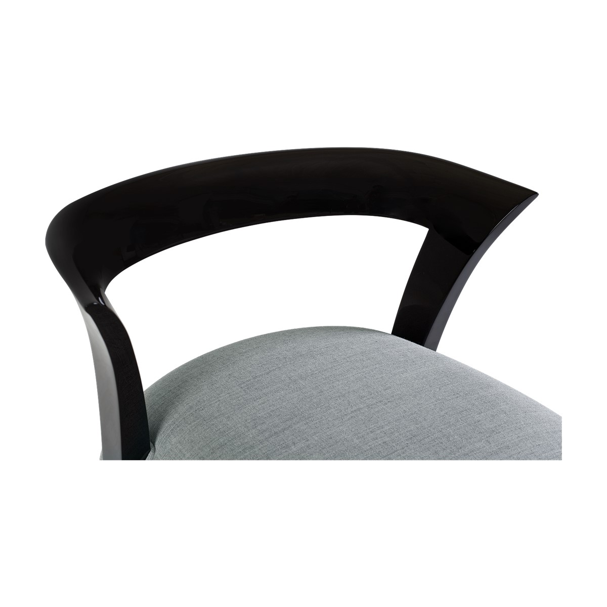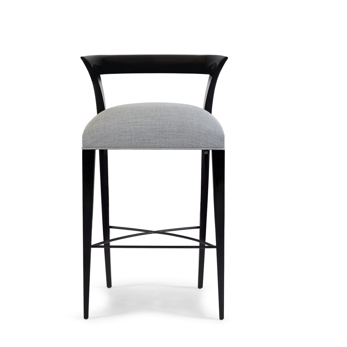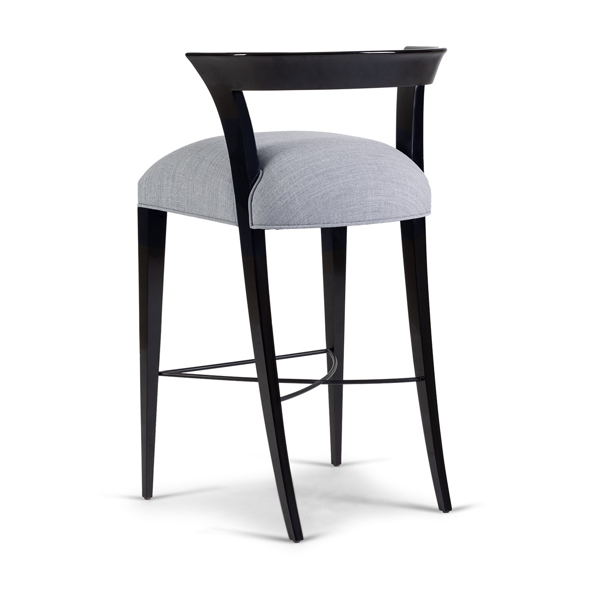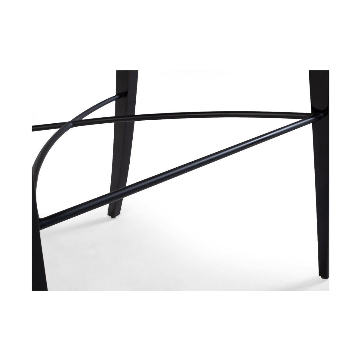 A cantilevered back and sweeping saber legs lend this striking contemporary bistro stool a role at any counter or bistro table.