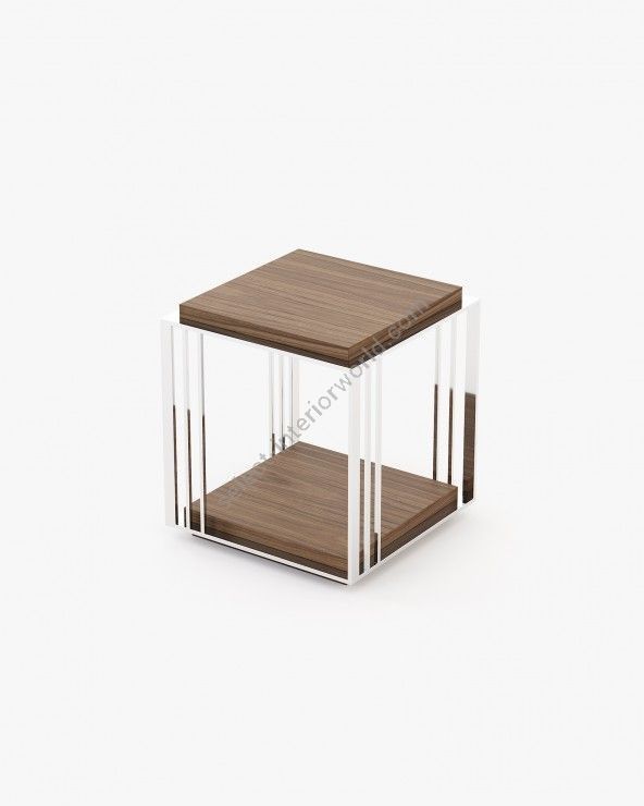 The Megan side table is a classic piece with a wood top and metallic structure, ideal for timeless spaces with refined souls.