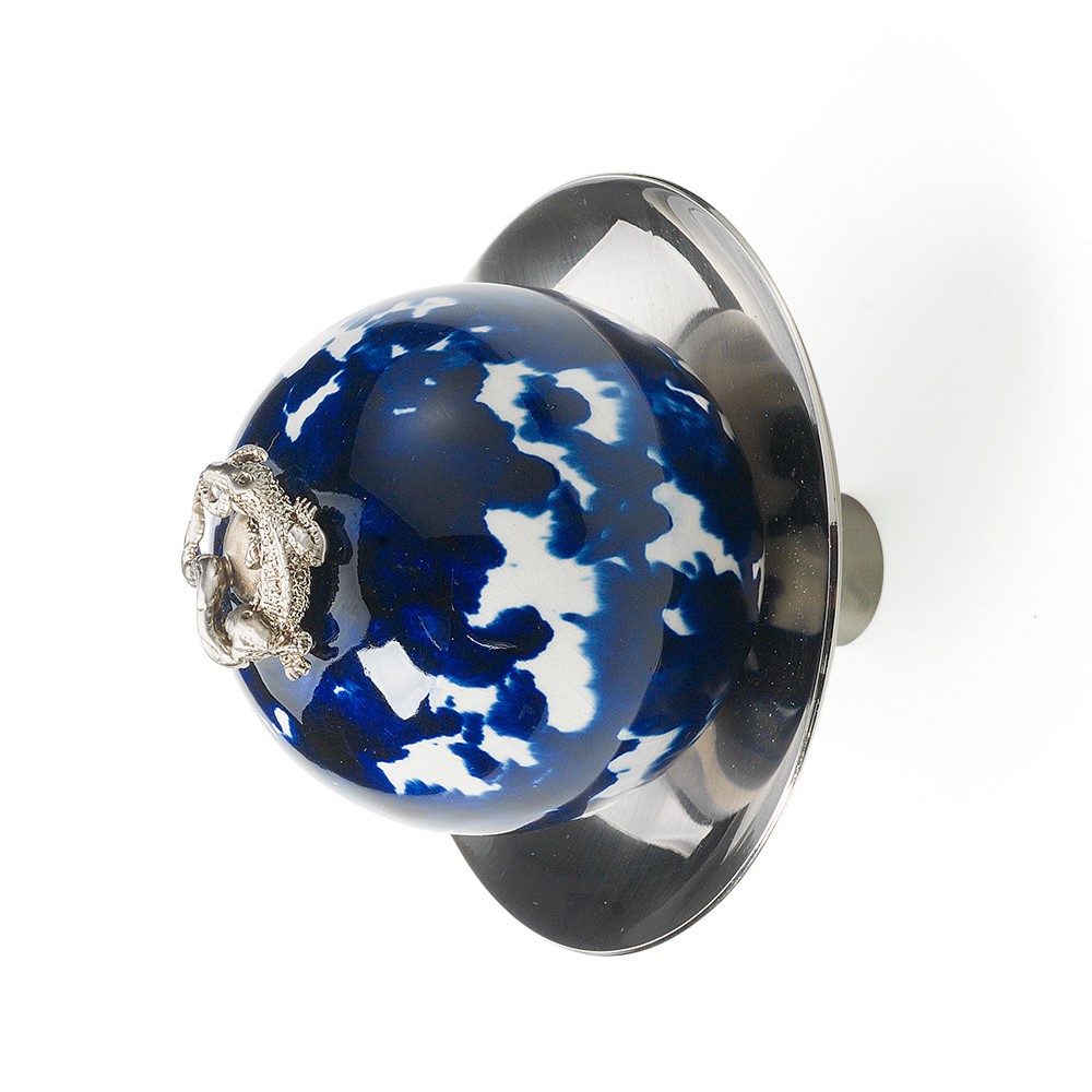 Brass handle in brushed nickel with special cast bronze. Sphere in hand glazed majolica.