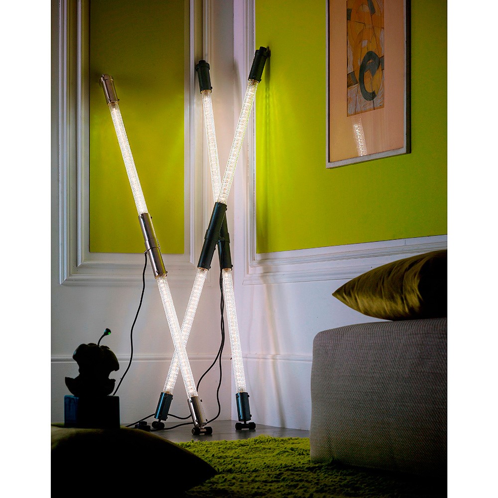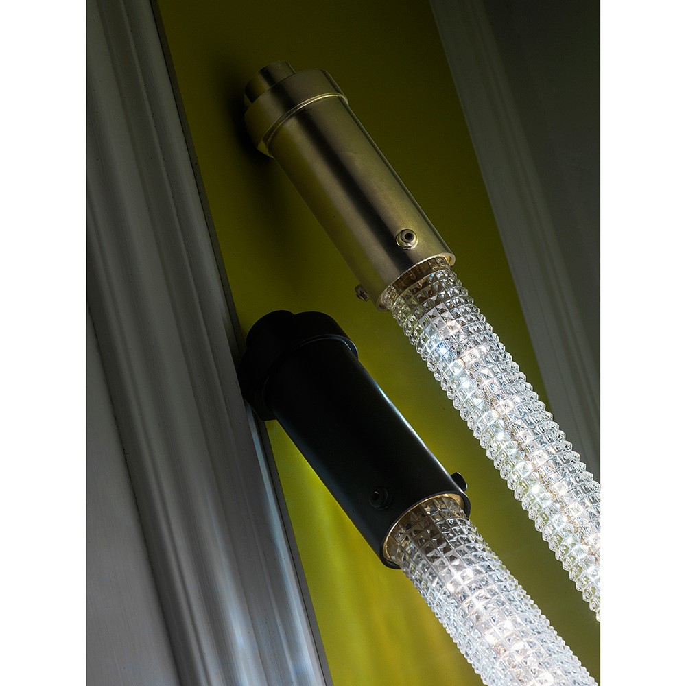 Brass standing lamp with silver brushed finish and hand cut crystal.