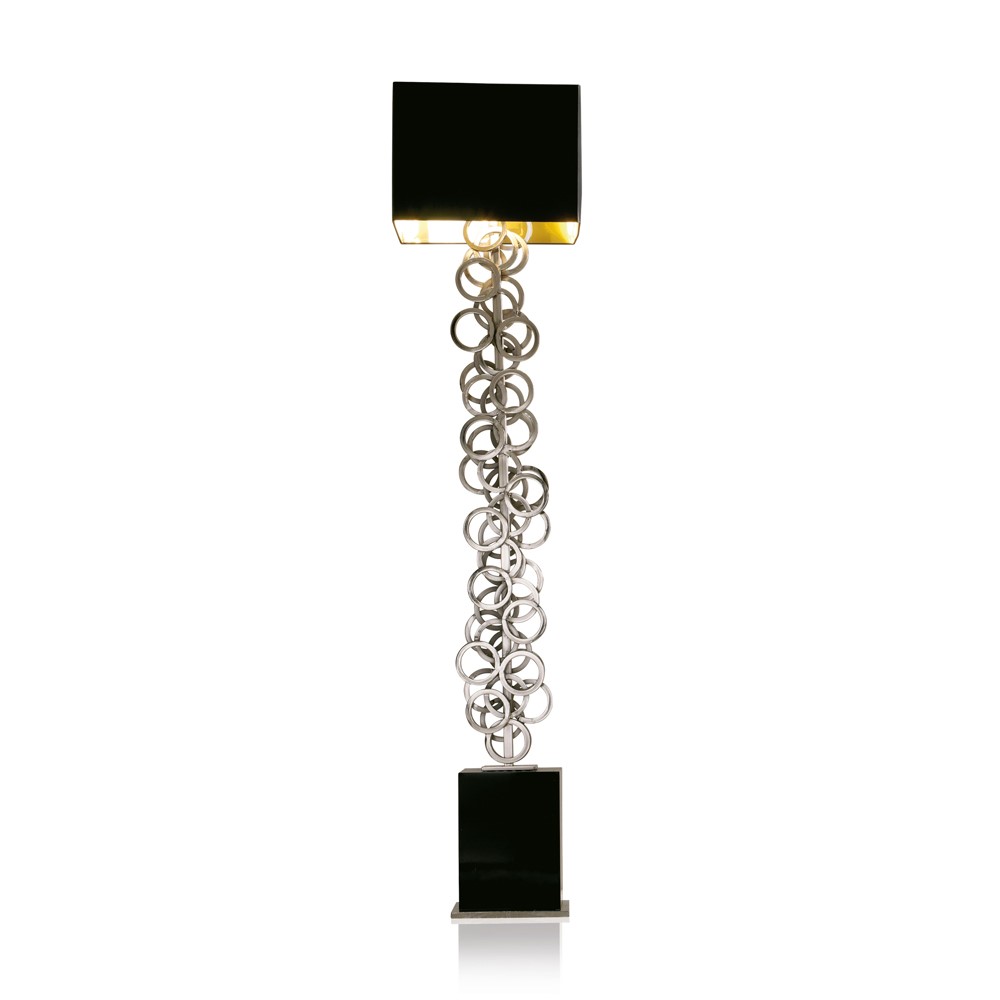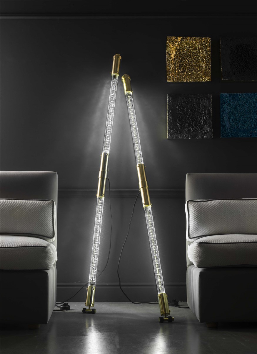 Brass standing lamp with gold brushed finish and hand cut crystal.