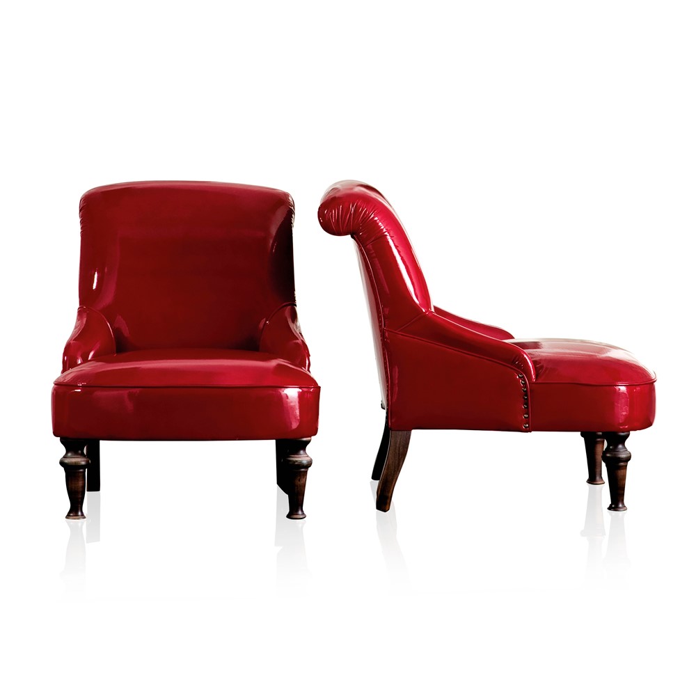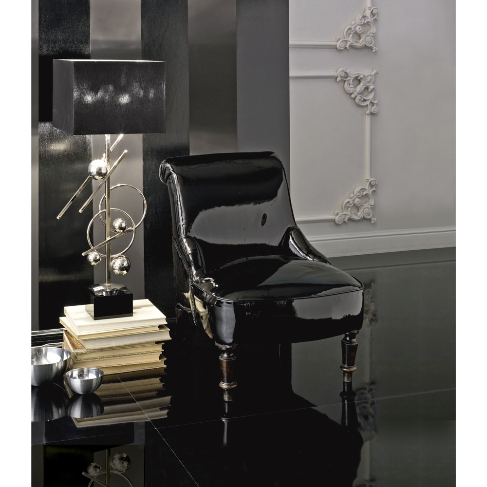 “Nonna Elena” collection armchair, upholstered with black patent leather, wooden legs.
