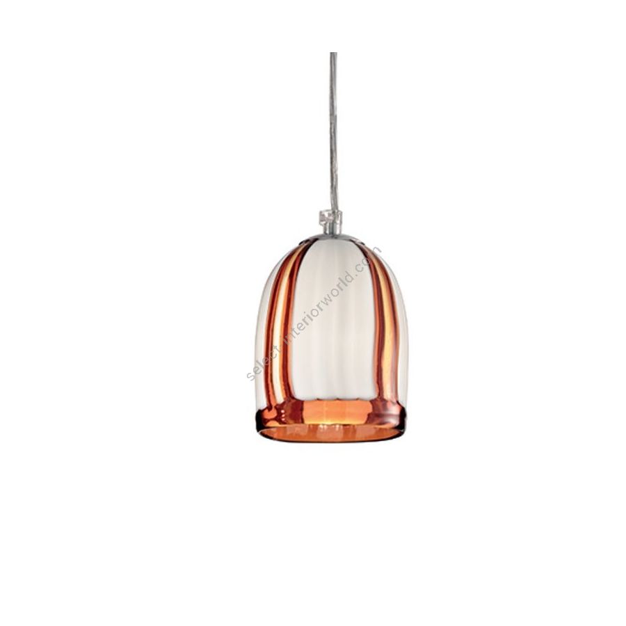 Nine types of textures enrich the simple shape of this bell always different in the strokes, obtained with an ancient decorative hot technique that involves the fusion of rods containing smooth wires in milk white or colored glass. Joyful individually, it becomes the perfect solution for custommade projects with an extremely creative look.