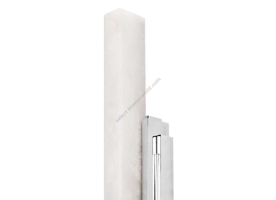 The Skyline outdoor wall lamp was designed as a cosmopolitan yet ethereal piece for outdoor areas. Supported by stainless steel frames, Skyline has a translucent effect achieved with alabaster stone, offering soothing lighting. Its silvery and architectural character introduces a stunning sculptural scheme that will perfectly match its surroundings.