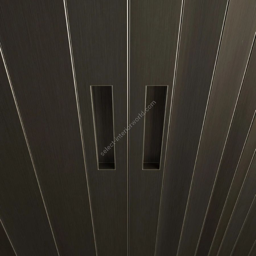 Metal handle carved into the thickness of the door. Customizable in all the metals of the Stars collection: satin brass, burnished brass, satin copper, burnished copper, polished steel or black iron 'cenere'.