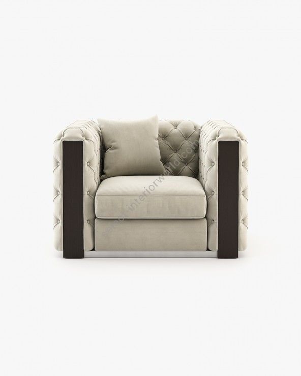Through its unique back, designed with the deep buttoning technique, Jean Sofa small is an impressive piece for desirable living rooms. This upholstered sofa is the perfect addition for cosy retreats and welcoming open spaces. Jean makes the most out of a living room that doubles as a dining room. It is a versatile seating piece with wooden details and metallic base.