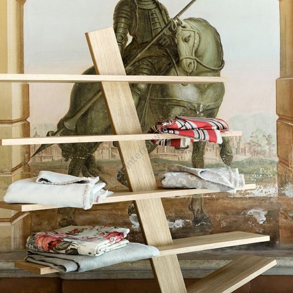 Freestanding bookcase made of solid ash, consists of a vertical supporting element and 4 diagonally joined shelves. Equipped with holes for wall mounting. The Supergiù bookcase with its pleasant and unusual shape gives an interesting touch to the surrounding space. The asymmetrical lines make it suitable for young ambiences, but at the same time, it is also able to characterize refined contexts.
