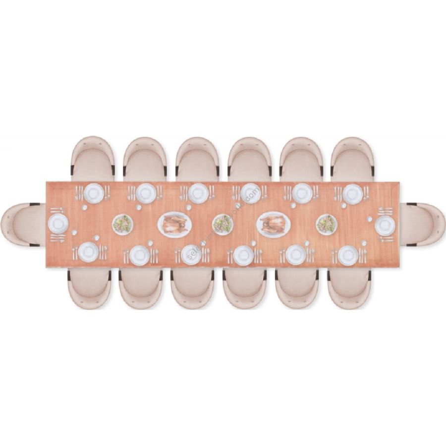 Certified Mahogany hardwood. Hand-Carved. Veneered Mahogany top. Inlaid veneer top. Two piece section table top for easy building access. 12-14 Seater Table. Available in a selection of outstanding Standard and Premium finishes. For residential use only. Commercial use is classified as Special Order Design (SOD), and alternative materials may be required. Contact us for details.