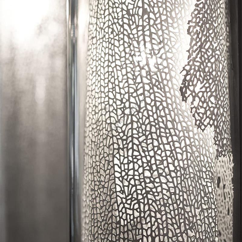 Capturing a moment in time, Frame features a metal coral leaf, enclosed inside a borosilicate glass preserving a delicate imprint of nature. Hidden inside is a single bulb which glows from within. Creating a stirring light that projects a dynamic shadow due to the permeable coral. Frame is available in white, red, gold plated or silver plated.