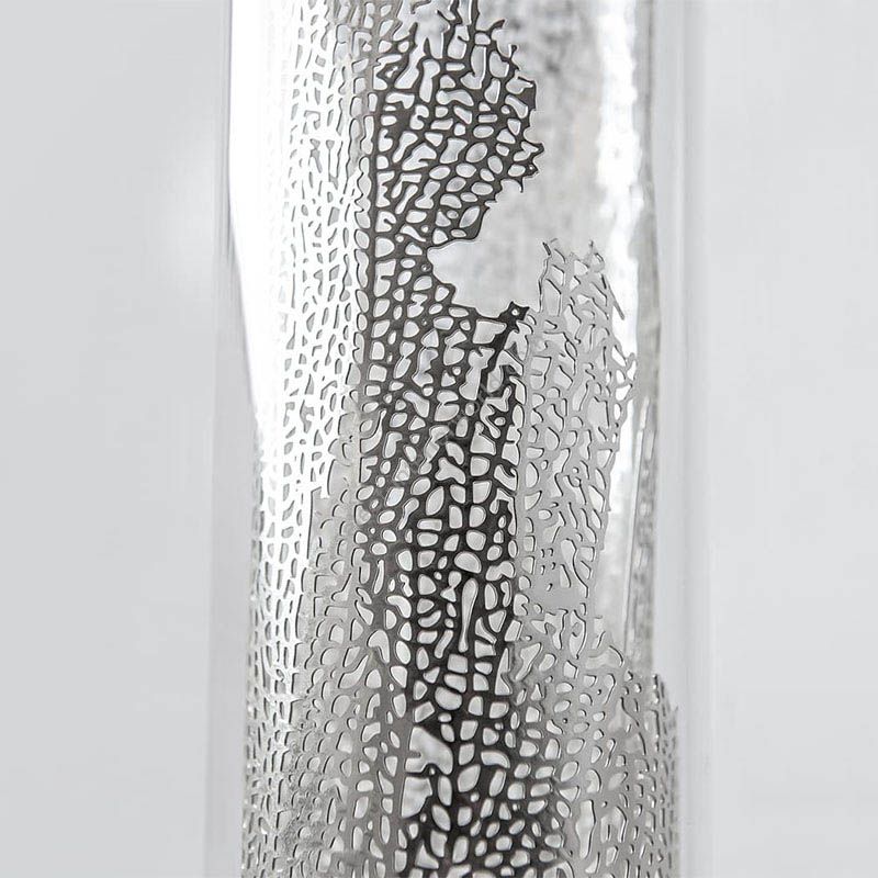 Capturing a moment in time, Frame features a metal coral leaf, enclosed inside a borosilicate glass preserving a delicate imprint of nature. Hidden inside is a single bulb which glows from within. Creating a stirring light that projects a dynamic shadow due to the permeable coral. Frame is available in white, red, gold or silver plated.