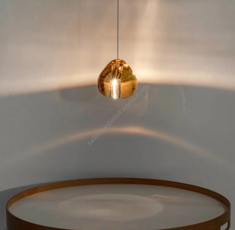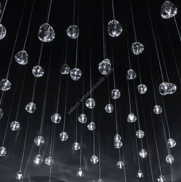 Inspired by the tranquil and mesmerizing light refractions created by water, Mizu is a customizable pendant light from Terzani. Like water droplets, no two Mizu are alike, each crystal shape is unique and made meticulously by hand. Using only the clearest crystal, Mizu perfectly emulates water’s refraction of light, casting amazing patterns around the room, reminiscent of flowing water. Available in clear, silver dust, gold, cognac and champagne finish. Design Nicolas Terzani.