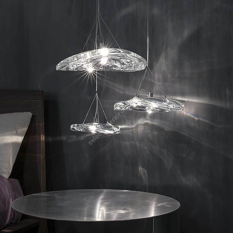 Manta is the latest design featuring the distinctive lead crystal first unveiled in Nicolas Terzani’s best-selling Mizu. Collaborating with designer Dodo Arslan, the two imaginative minds created a light featuring sinuous, undulating lines. The results are soft waves of crystal light reminiscent of being underwater. The innovative Manta is made of crystal, with a dimmable integrated LED lamp focused on maximizing the crystal’s reflection. Manta’s organic form collection is available in three sizes (Ø 20cm-7.9”, Ø 26cm-10.2”, Ø 32cm-12.6”) and can be installed in numerous, customizable arrangements.