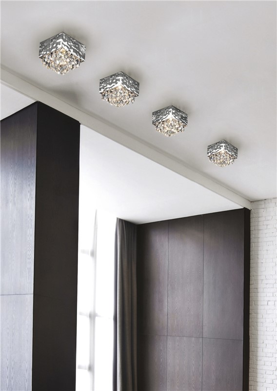 Spotlight with a structure in hammered metal and coloured crystal drops.