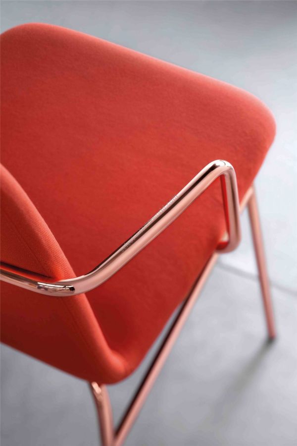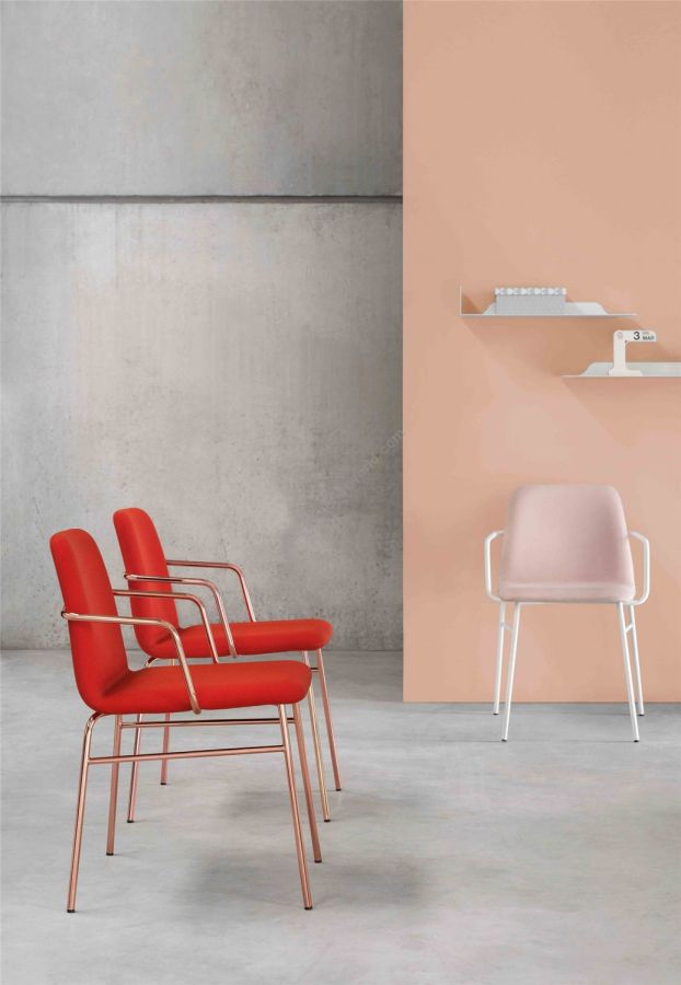 The BARDOT MET TU version stands out for its elegance and brightness, which amplifies its stylistic figure with new structures, new pastel shades and vibrant colors, and refined and contemporary finishes.The structure is lightened with clean legs thanks to the use of the metal rod. A pleasantly soft and graceful design, that of the new Bardot Collection, with a 1950s flavor, made up of full volumes, rounded lines, rounded corners and in which you can feel a singular overall harmony.With a wide range of coatings, fire-retardant fabrics, wools, velvets, leather or eco-leather, which make Bardot suitable for both domestic environments - kitchen, dining room, study - and larger contract contexts.