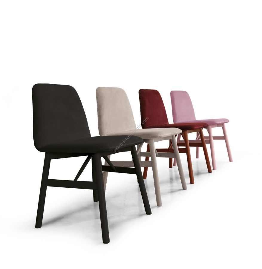BARDOT extends its style to include new frames and new pastel and vibrant shades.The new '50-style Bardot Collection is pleasantly soft and graceful in design, with solid volumes, rounded lines and a remarkable overall sense of harmony.Available in a wide range of upholsteries, including fire-retardant fabrics, wool, velvet, leather and faux leather, Bardot is the ideal choice both at home - in the kitchen, dining room or study - and in public spaces.The rounded wooden legs of the stool and of the armchair with padded armrests echo the soft lines of the original Bardot chair.The new lounge chair, with its more generous dimensions, fits gracefully into public environments, such as bars, restaurants, halls, waiting rooms, and informal meeting rooms.
