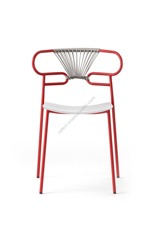 | Description: | Stackable structure in painted metal or in polished chrome, polished black chrome, polished brass, seat in ash, back with colored rope weaving. |