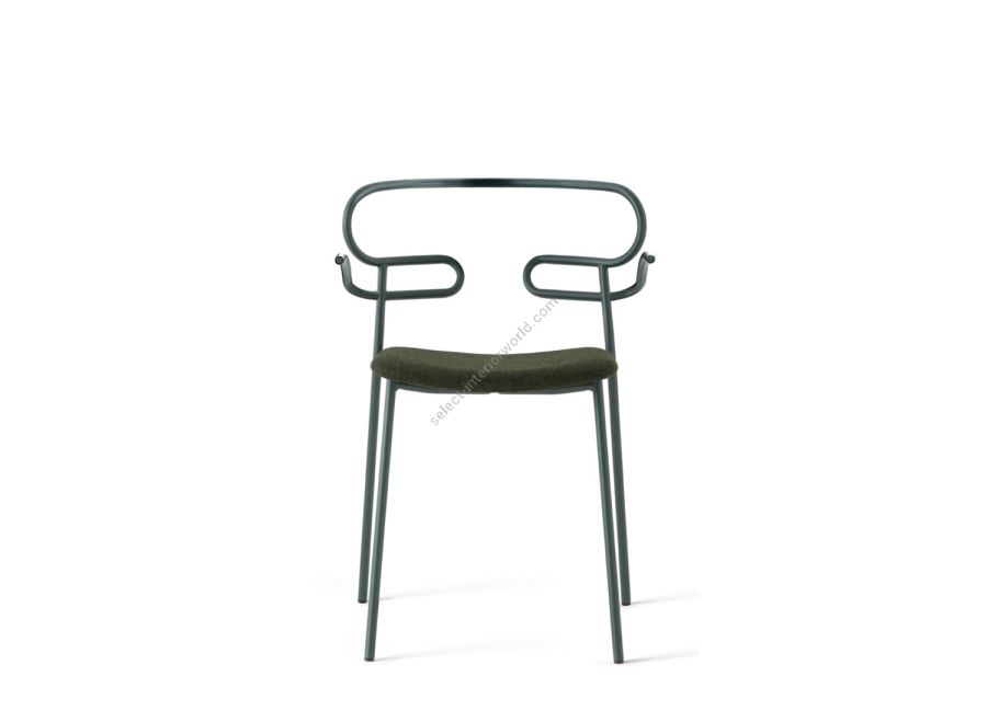 | Description: | Chair with painted metal frame with armrests and padded seat. Available as well with metal frame with armrests in chrome shiny, chrome black shiny, brass shiny. |