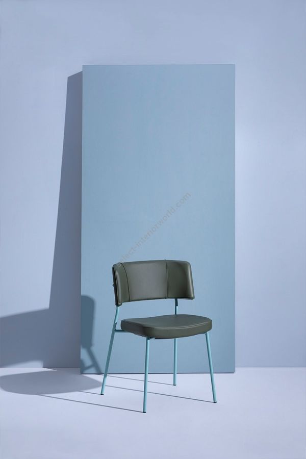 | Description: | Stackable chair with metal tubular legs base, upholstered seat and backrest. |