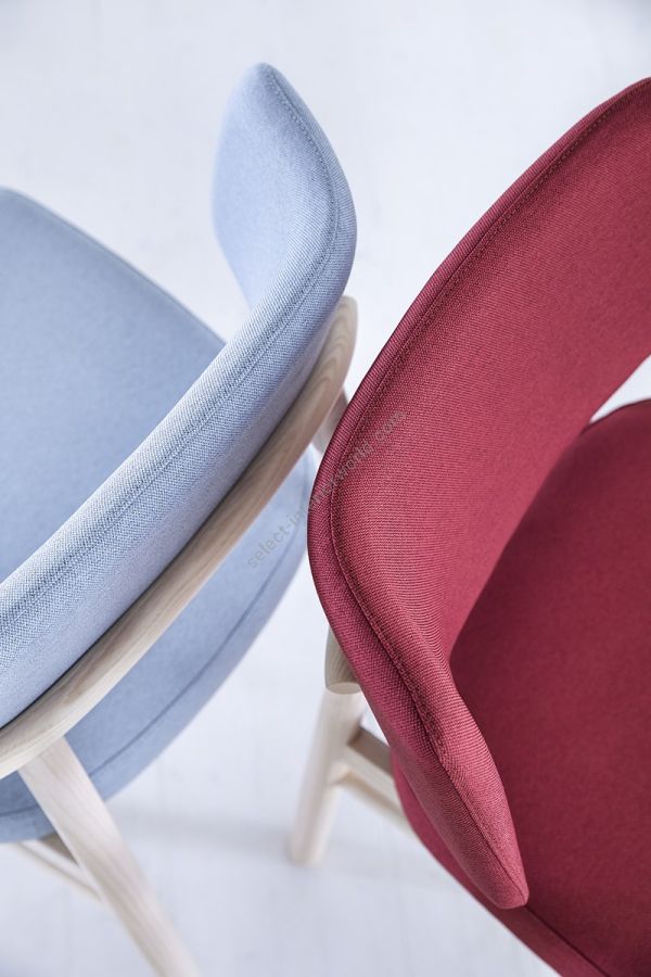 Comfort, an ergonomic shape and a hardy structure are the characteristics of the Marlen design, the new Trabà chair designed by EP Studio.Hints of a Fifties vibe can be glimpsed in the curvature of the backrest - generously padded, like the seat - and in the dynamic, lightweight 4-leg metal rod frame, which becomes bulkier and more retro in the solid ash wooden version.Polished brass or copper add a vintage touch to the colour palette that can be mixed and matched to obtain the perfect chair for residential and tailor-made contract projects alike.