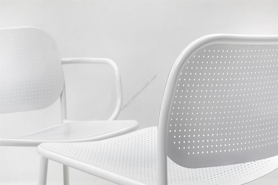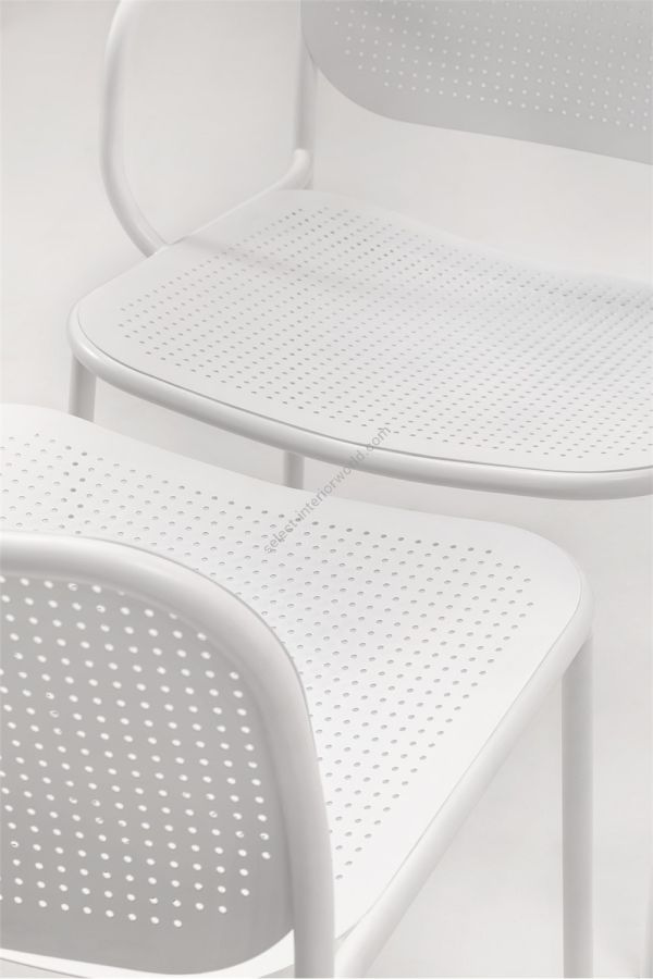 The METIS DOT collection includes the chair with or without armrests, the lounge version with or without armrest and the stool in two heights. In all versions, the tubular metal frame is complemented by curved metal sheet backrests and seats with a decorative hole pattern, as a modern interpretation of the classic Viennese weave. Available in all standard and special colors, METIS DOT brings its unique style to indoor and outdoor spaces.