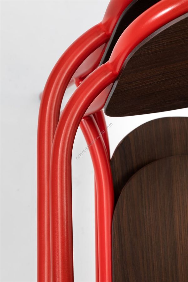 A complete collection for modern spaces inspired by 1950s Scandinavian simplicity. The metal frame with curved lines, customisable in different colours, is combined with the seat and backrest in ash, oak or heat-treated oak. The chair with or without armrests, the lounge chair with or without armrests and the stool in two heights are the models in the Metis Wood range that bring a vintage atmosphere and timeless style to any interior space.