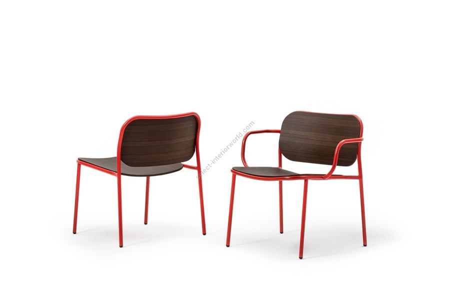 | Description: | Lounge chair with structure and armrests in painted metal. Seat and back available in ash, light oak, heat-treated oak or black aniline. |