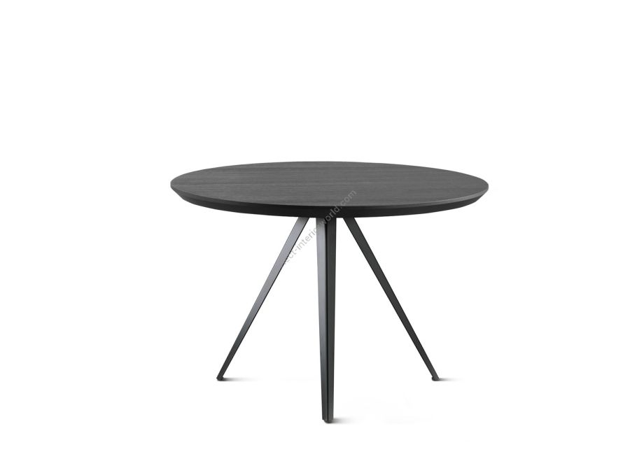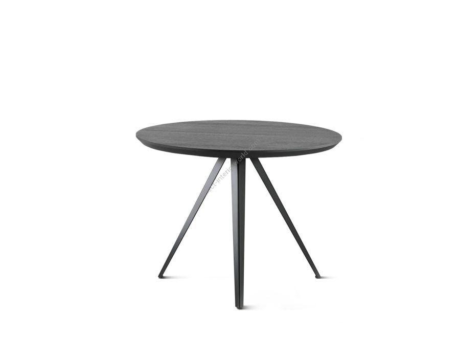 Two new solutions for the AKY table collection, which is enhanced by a tête à tête variant: you can choose between a square or round top, for intimate breakfasts in public environments or to personalise small living spaces. AKY is supported by legs with central meeting point available in wood, combining solid and fluid shapes, or metal, to provide the table with both ascending tension and lightness.