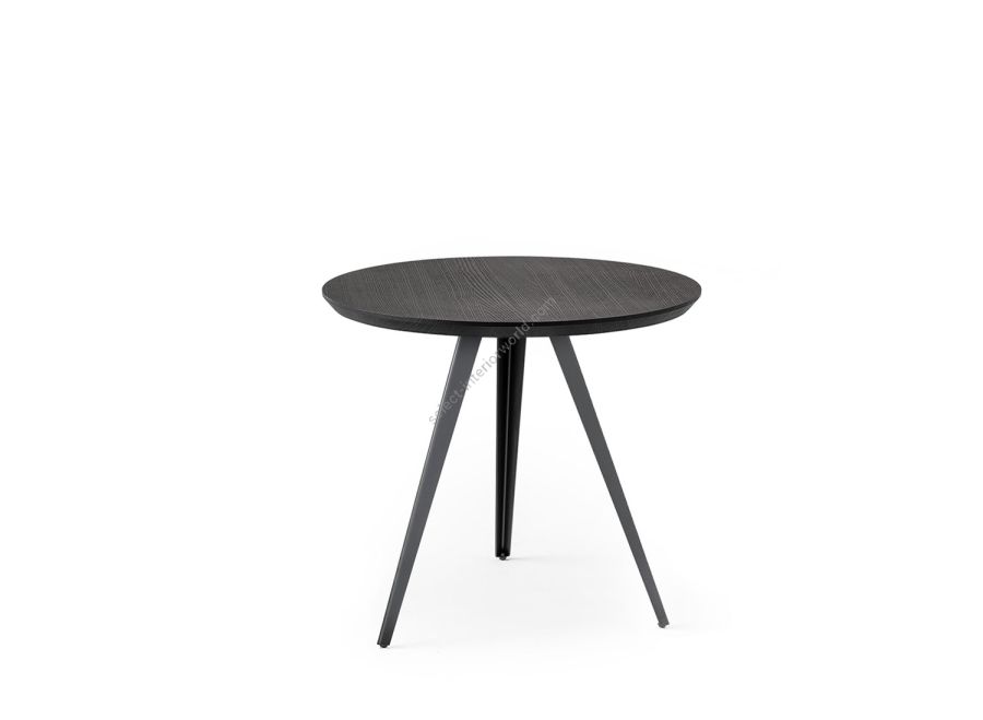 Two new solutions for the AKY table collection, which is enhanced by a tête à tête variant: you can choose between a square or round top, for intimate breakfasts in public environments or to personalise small living spaces. AKY is supported by legs with central meeting point available in wood, combining solid and fluid shapes, or metal, to provide the table with both ascending tension and lightness.