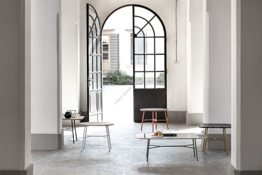 | Description: | Coffee table with Painted metal frame, top in ash wood, hpl, ceramic glass or marble. Available in OUTDOOR version. |