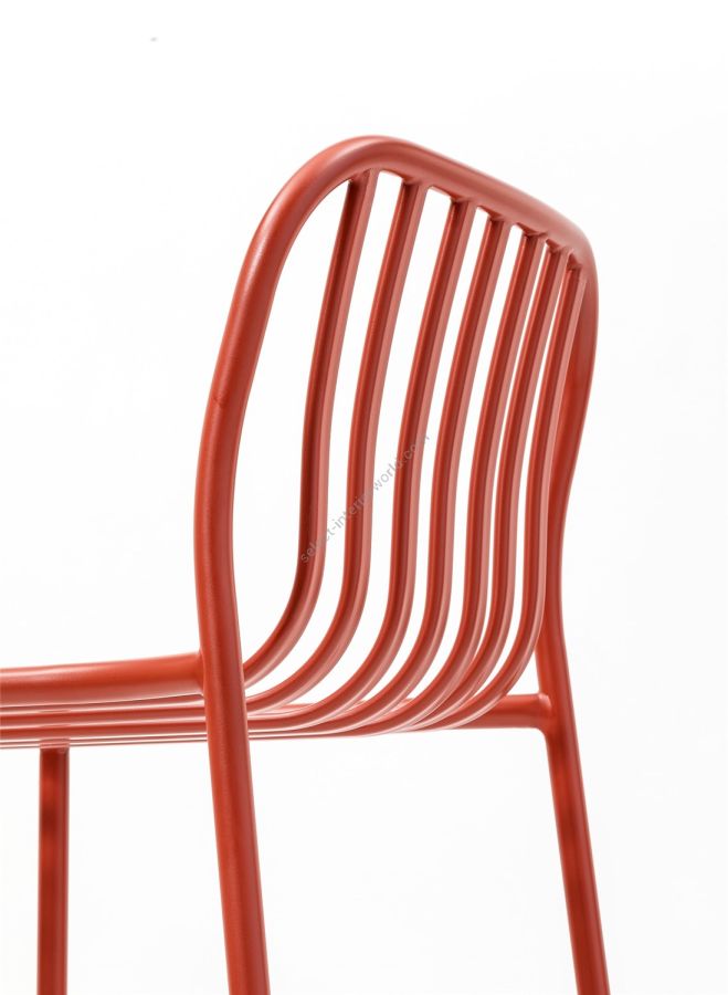 A collection made entirely of metal, with minimalist design and maximum functionality. The backrest and seat of Metis Line feature a wire design with vertical ovals, which sinuously and harmoniously accompany the outline of the frame, adapting to the bodyto ensure comfort. The chair with or without armrests, the lounge version with or without armrests and the stool in two heights bring ergonomic forms and an infinity of colour options to any indoor or outdoor space.