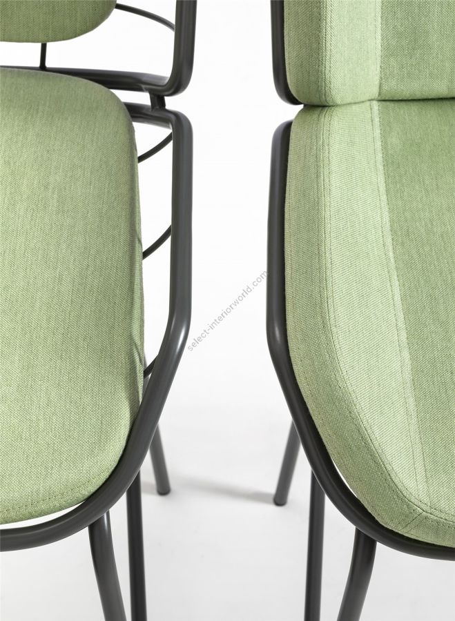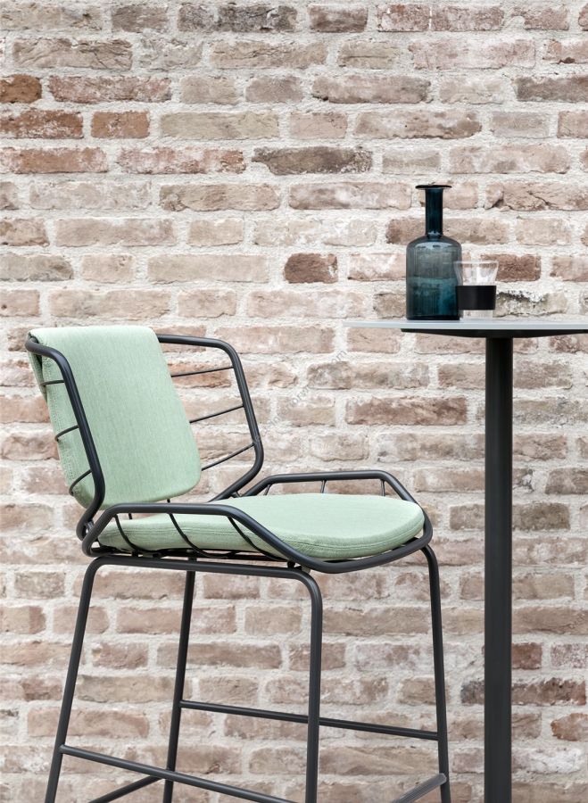 Bringing comfort and style to a snack counter in the kitchen or a public hospitality area, Skin Stool adapts in height and personality to all settings. The painted tubular metal shell can be teamed with full or “light” upholstery options, available in a wide range of fabrics, leathers, eco-leathers and velvets to create tone-on-tone or contrast combinations. As the name suggests, Skin Stool is a second skin for indoor, outdoor and hybrid spaces like verandas, terrace bars and bow windows.