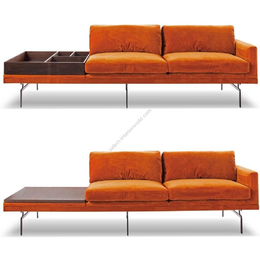 The backs of the sofa and the seat cushions are completely flippable and all the upper structure is reclining. In this way, the sofa can be placed in front of the Block System and Alcova Light.