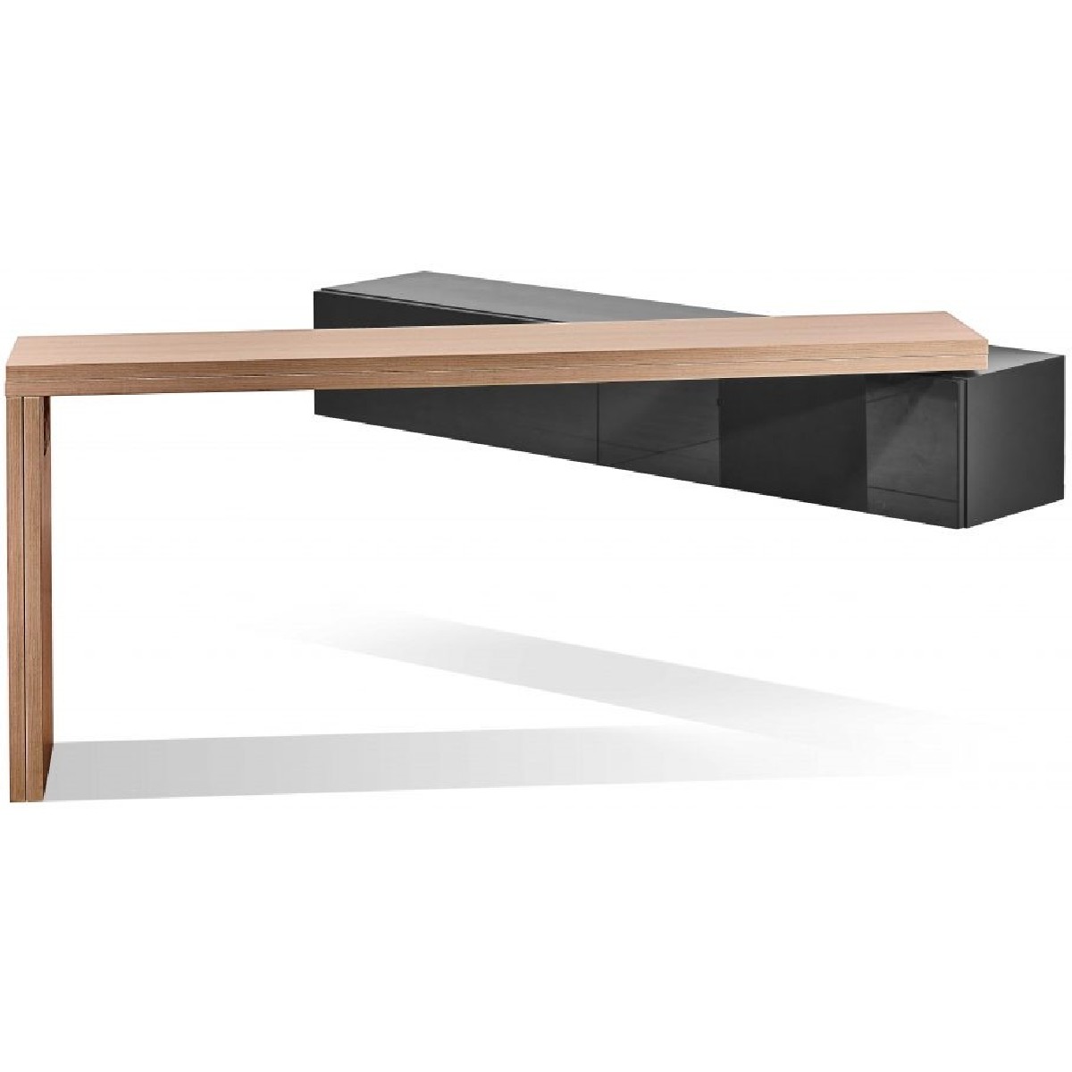 TWIST table turns into desk. The rotation of the upper top creates desk which, once opened like a book, can be converted into a home office area.