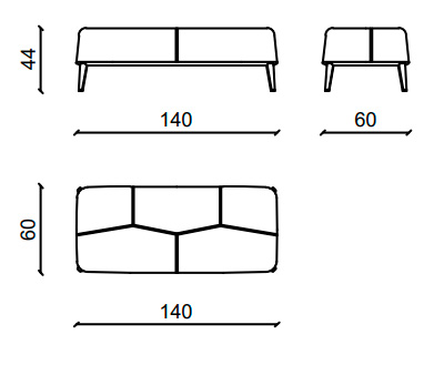 | Dimensions (HxWxD): | cm: 44x140x60 / inch: 17.32"x55.12"x23.62" |
