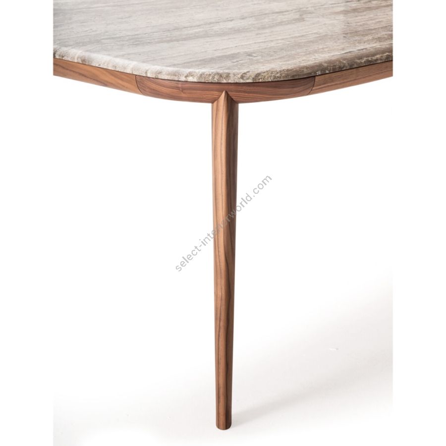 Jodie is a table that articulates the dialogue between substance and grace—where elemental forms unite with materially expressive surfaces. Its solid walnut legs flow seamlessly into the coordinating walnut top, establishing a visual equilibrium of quiet sophistication. The surface is equally available in marble, chosen from Ulivi Salotti's curated selection, introducing a dimension of enduring refinement.
