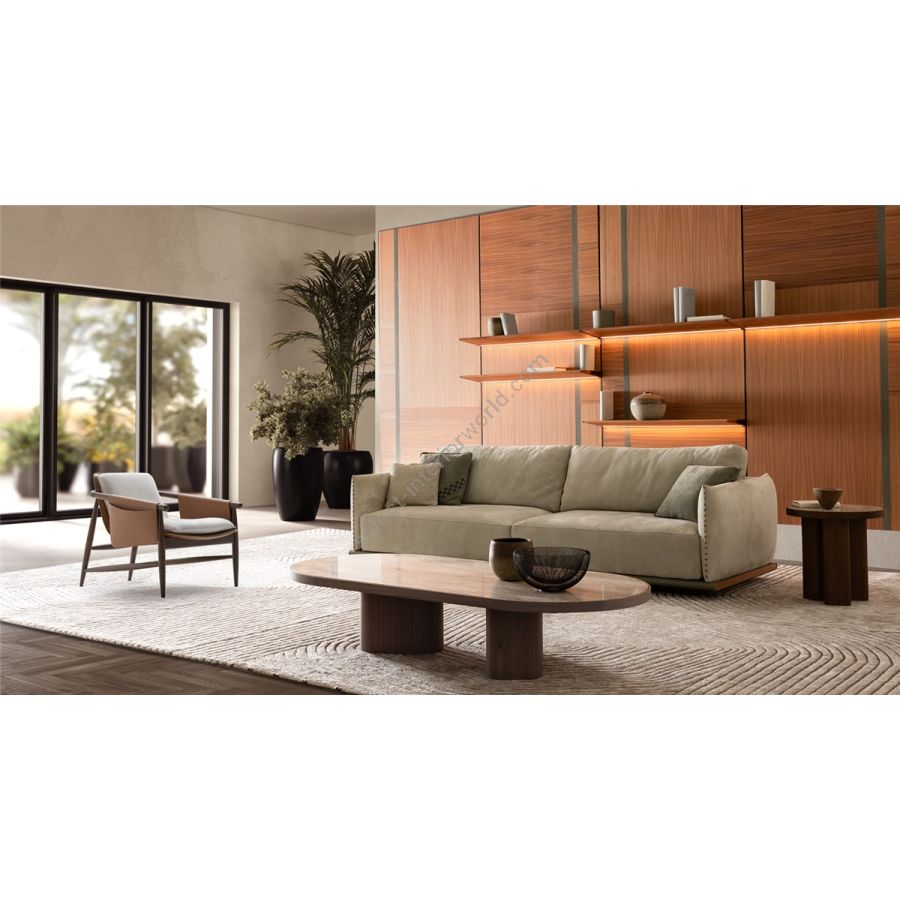 The project is born to highlight Ulivi’s top-notch craftmanship skills. In addition to the many solutions offered, it is possible to opt for customized sizes and compositions. The base of the sofa, along the whole depth of the element, is enriched by elegant wooden or leather details. The structure of both the armrests and the backrests can be upholstered using multiple types of leathers and fabrics, including a combination of the two materials. The external parts are held together with Zigly’s signature detail: a leather string, customizable upon request, which helps creating a beautiful contrast and truly makes the sofa stand out. Its fluid and enveloping lines create a visual harmony that captivates at first glance, inviting moments of relaxation and conviviality. Every detail is designed to offer a unique experience, where contemporary design blends with impeccable craftsmanship. Zigly is the symbol of understated refinement, capable of transforming any space into a welcoming and sophisticated environment. Its versatility is expressed through a variety of configurations that allow you to personalize your living area according to your desires. With Zigly, comfort meets style, creating the perfect retreat for everyday well-being.