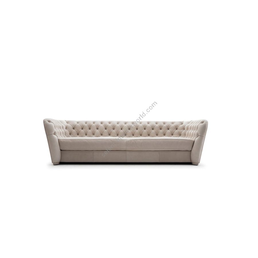 Tailor made real “capitonné” finish of back cushions and arms. Item available in different types of leathers and fabrics.