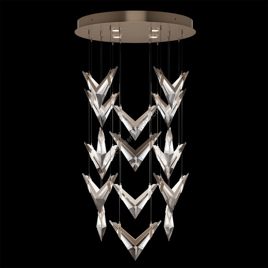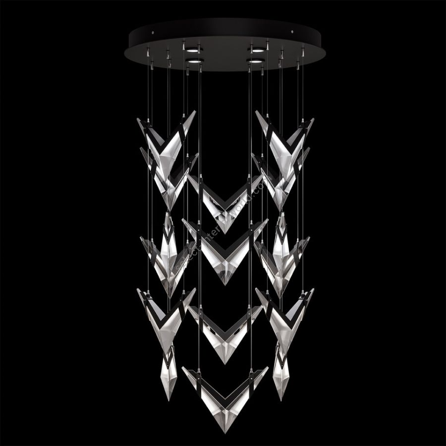 Inspired by the bold geometry of chevron shapes and the sleek lines of modern aircraft, Blade brings a sense of motion and precision to lighting design and merges sleek design with modern functionality. Pendant features cut crystal and integrated LEDs in Standard Black Iron or Champagne finish. Dark Walnut stained wood featured on select items adding warmth to the metal forms.