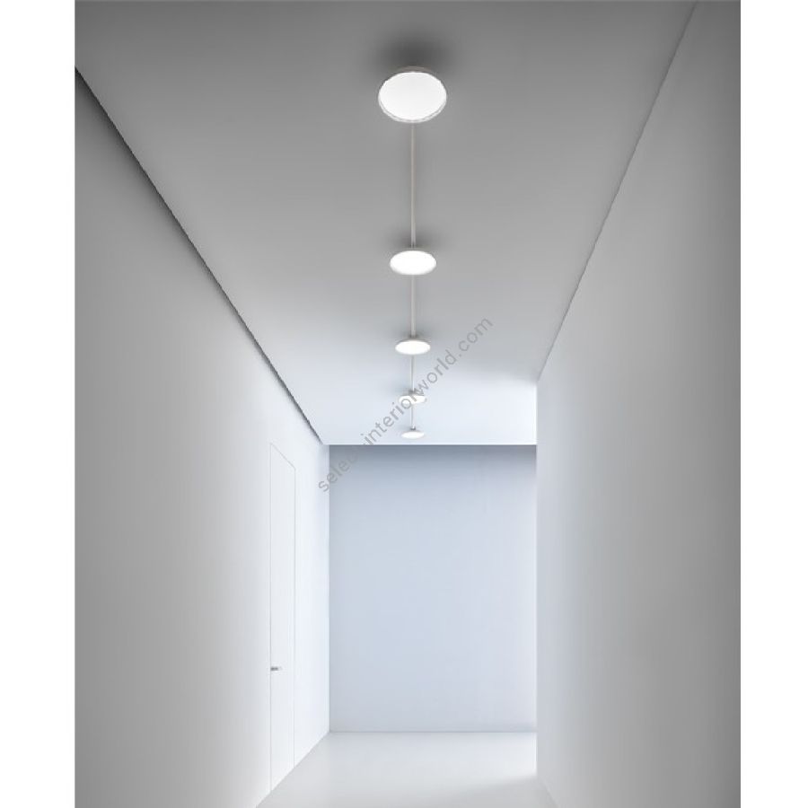 This interesting indoor system is an integration of the homonymous series. MYMOONS ceiling lamp or pendant become refined points of light inside the system and must be integrated with 16, 22 or 28 mm conduits , that do not require additional accessories for their connection. It is however necessary to specify, at the time of ordering , the rose output/s you intend to keep open for the conduits connection and its diameter. The available finishes are the enveloping matte white or the sophisticated matte black.