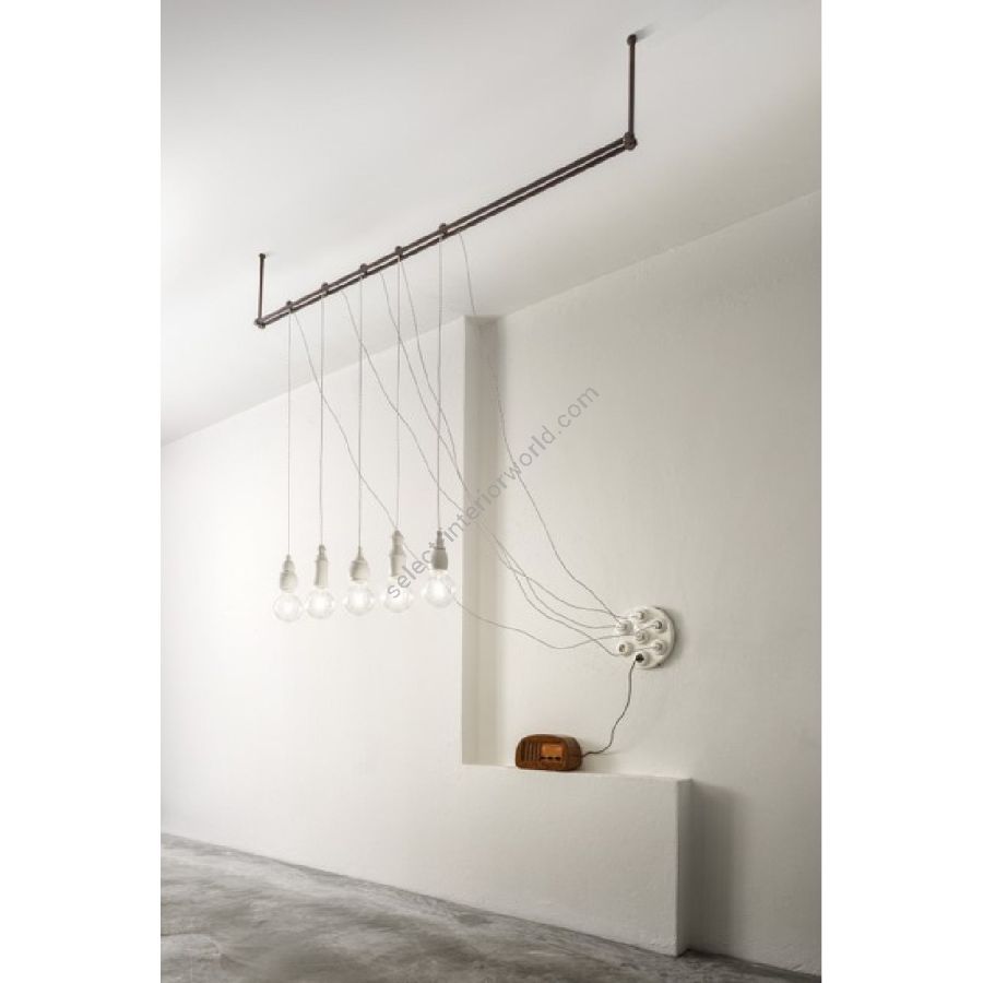 This solution is indicated to create, as desired, a line of pendants on modular support in antiqued brass.