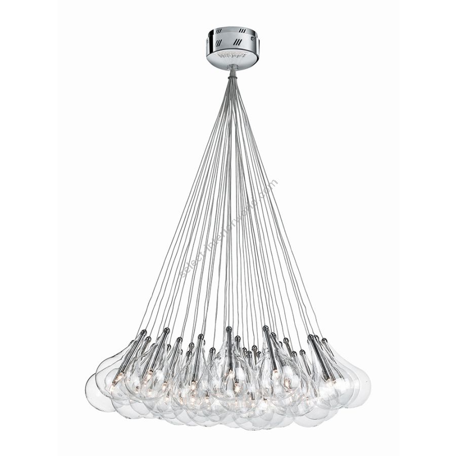 The structure of all DROP LED pendants is made of chromed iron and the lampshades are made of transparent drop-shaped borosilicate blown glass. All include the driver, and the 1.1W 95lm 2700K CRI>80 G4 LED bulbs (not dimmable) are always included.