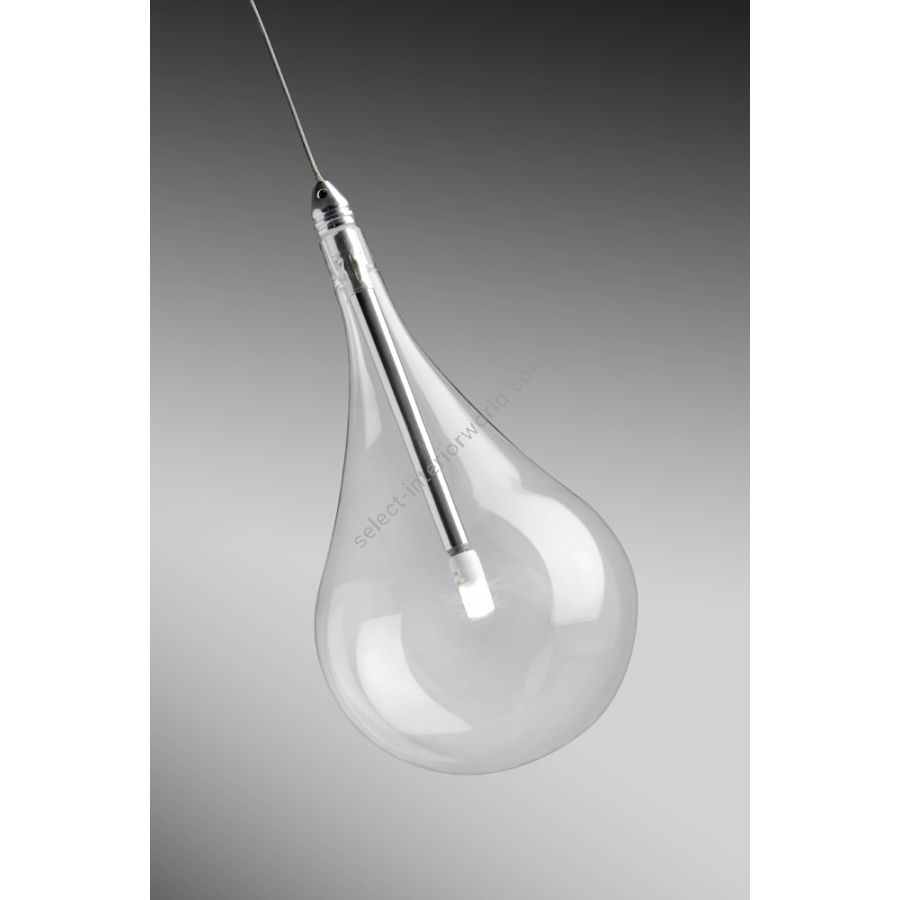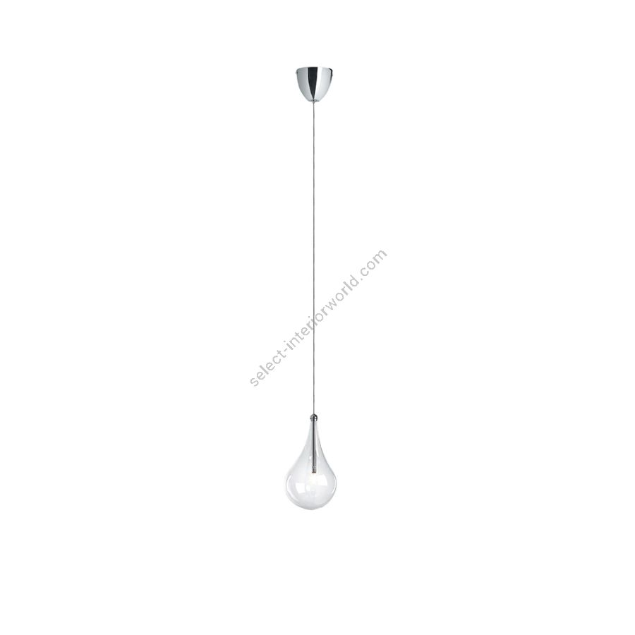 The structure of all DROP LED pendants is made of chromed iron and the lampshades are made of transparent drop-shaped borosilicate blown glass. All include the driver, and the 1.1W 95lm 2700K CRI>80 G4 LED bulbs (not dimmable) are always included