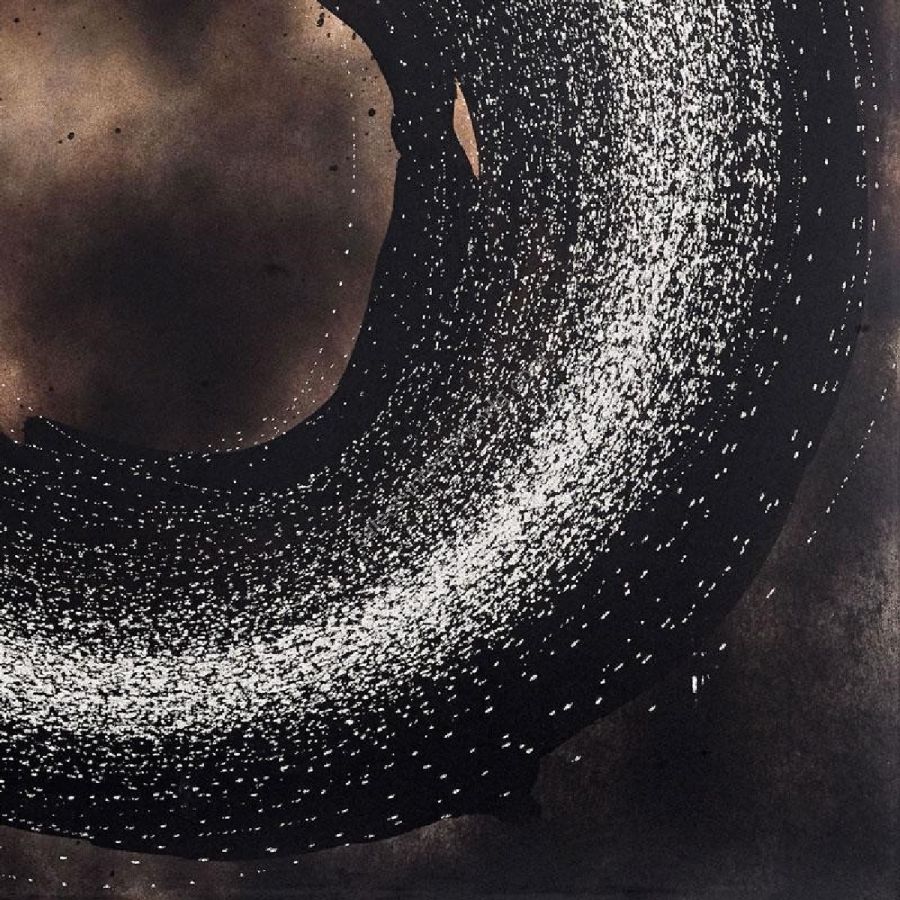 “Milky Way” decor with brown and black varnish hues on a circular concentric shiny decorative engraved motif.