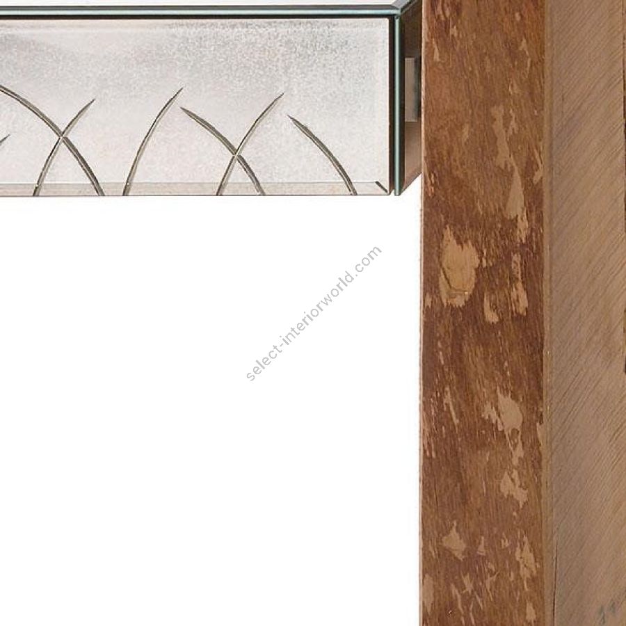 Console with two drawers in antiqued mirror and shiny handmade engravings.