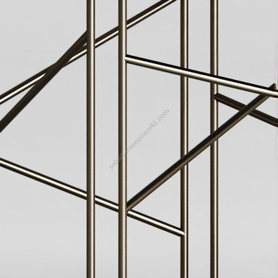 Metal structure with brushed burnished brass finish. 10 mm thick glass top decorated with Roddi and Neive finish.