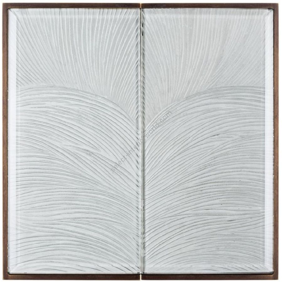 “Battuto” decor engravings on glass with clear mirrored finish.