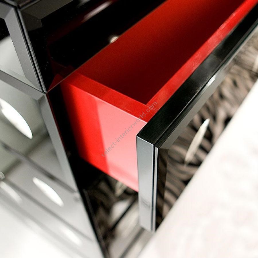 Four drawers with push-pull opening. Interior made of wood with red shiny lacquered finish.