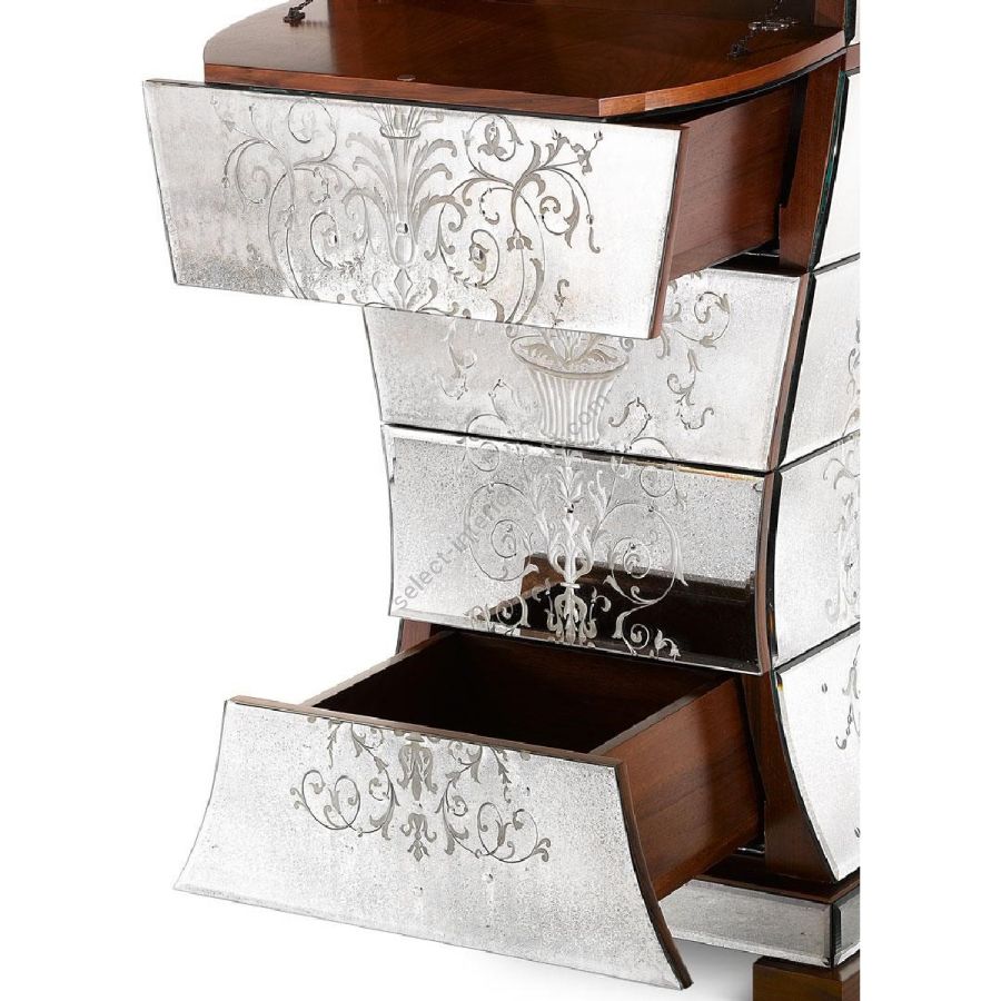 Arte Veneziana dressers embody the essence of Venetian luxury and timeless elegance. Meticulously crafted using traditional techniques and premium materials, these dressers are more than storage pieces—they are true works of art. Featuring detailed engravings, hand-etched glass, and refined finishes, each dresser transforms any bedroom or living space into a sophisticated interior. The harmonious blend of form and function makes them both beautiful and practical additions to your home.