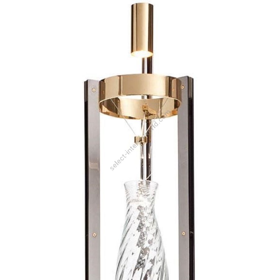 Floor lamp made of a black shiny nickel colour metallic structure and golden details.