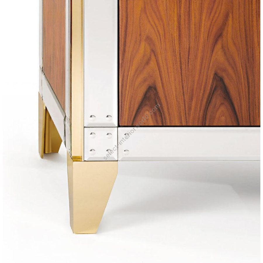 Nightstand in shiny rosewood with inserts in brass and bands in bevelled and hand engraved extraclear mirror.